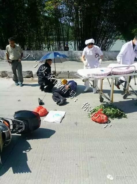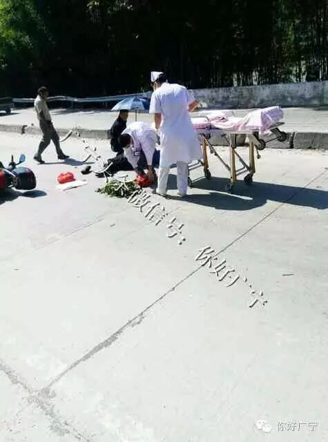 我刚好路过并和其他几位好心人士把路边的树叶放到前后的车道上,提醒其他车车主前面发生交通事故,并电话报警及通知其家属。很快,警察,医护人员到场处理。