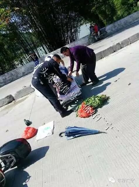 昨天上午,广宁古水路段发生一车祸,摩托车主倒地……事发前车主是古水往南街方向行驶,事故后,车主倒地不醒 !