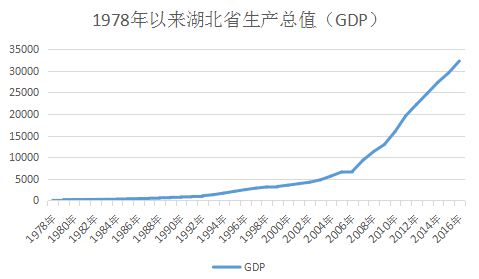 从1978年以来,湖北省生产总值一直保持着稳定增长。