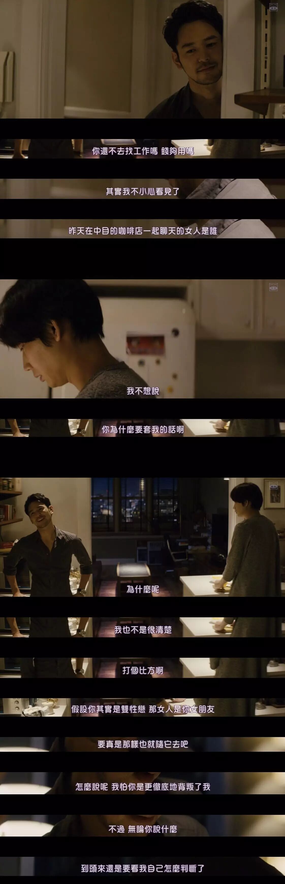 可这份信任又是脆弱的,所以优马看见直人与女生吃饭又有了以下一段对白。