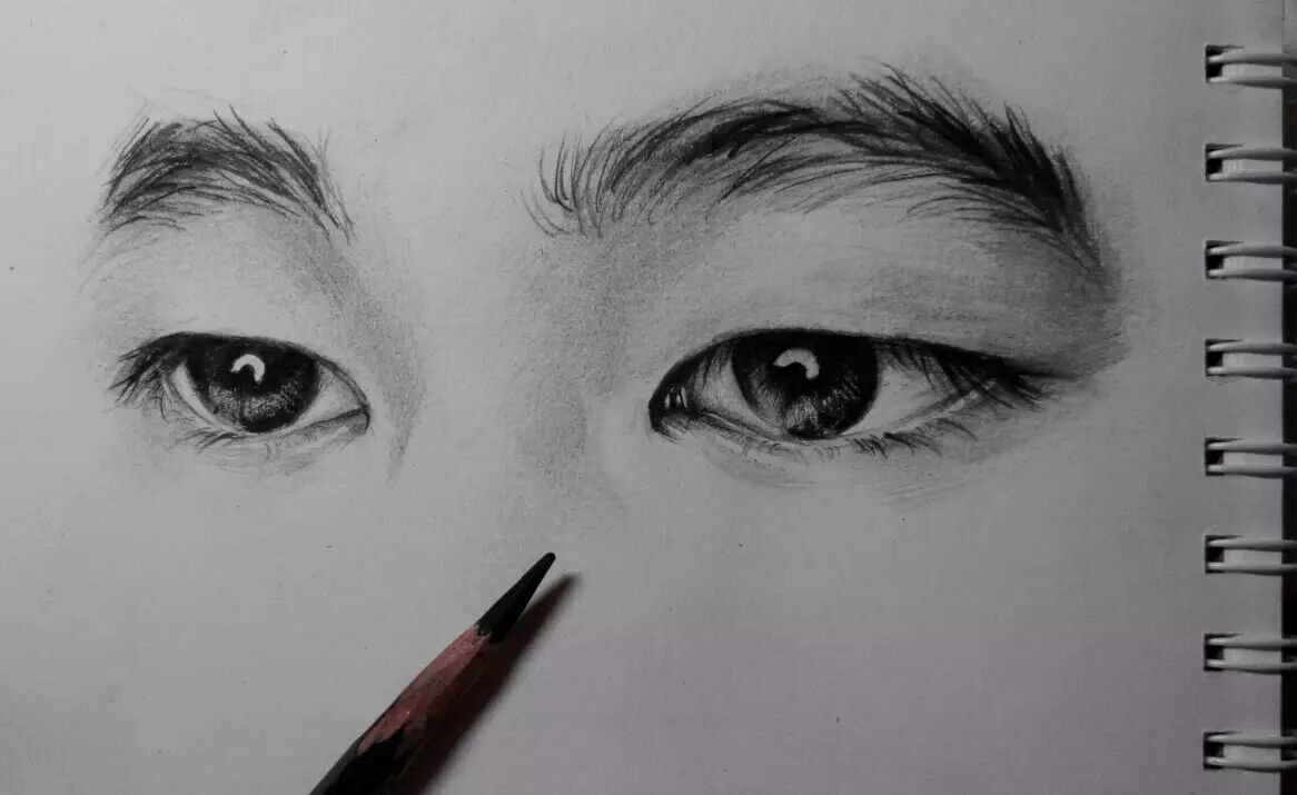 每个人的眼眶骨的形都是特殊形而且变化无穷。眼球的转动和眼皮韵开阖首先依赖眼眶骨的形状。不少人在人像作业中只注意观察眼睛的橄榄形的外轮廓,而不懂得要深入地从眼球、眼皮、眼窝、眼眶骨的多种形多种结构的关系中,找到这个统一形体的特征。