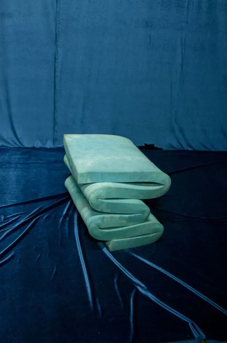 她对摄影的激情和抱负完全因为它能捕捉到意想不到的瞬间。一张给你全新感受的图片,甚至,意想不到的一天。所以毫无疑问,她最爱的照片也是那些从来没预想过的。比如有张照片是将一块泡沫折叠起来,然后放在地上,背景是蓝丝绒,那刻,那场景让Salah为之动容,于是拍了下来。这张照片成了她那天拍摄中最喜欢的照片之一,因为它讲述着不同的故事,一个碰巧遇到的场景。她喜欢真实,没有限制的时刻。Salah有次因为食物中毒生病了,这场景在她眼里有少许同情,对比空的沙发,无疑增添了些许无常。