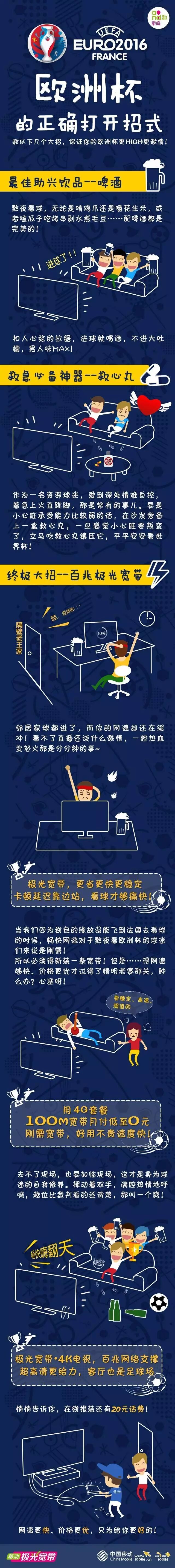 决赛来临之际,中国移动给球迷朋友们狂发福利啦!即日起,中国移动极光宽带有优惠活动,用指定4G套餐,20M宽带仅需10元/月,100M宽带低至0元/月,超值低价给你带来畅爽的看球体验!