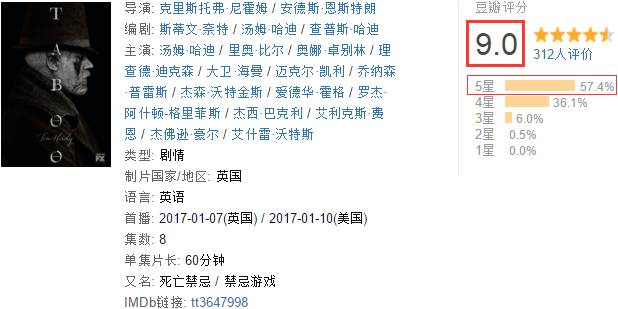 豆瓣评分9.0,57%的五星好评。