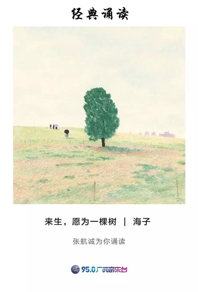 FM950《经典诵读》,我们一起来听海子的诗《来生,愿为一颗树》,由广西电视台主持人张航诚为你诵读。