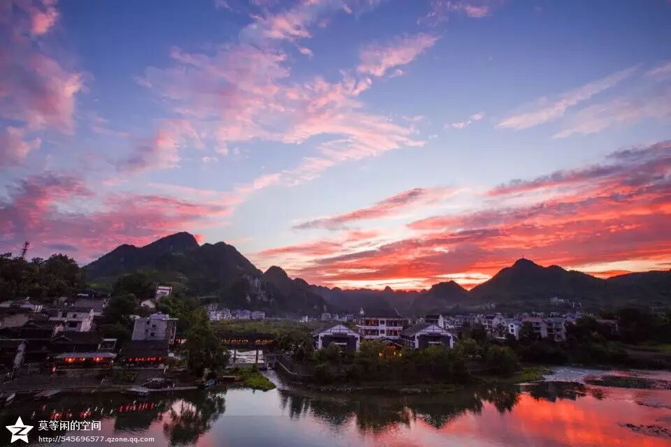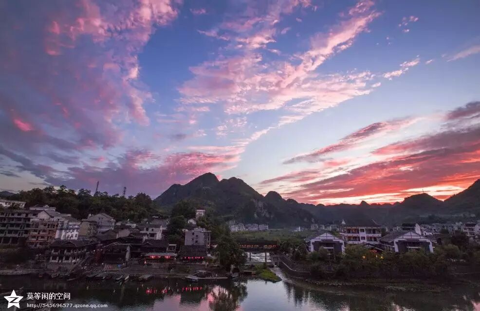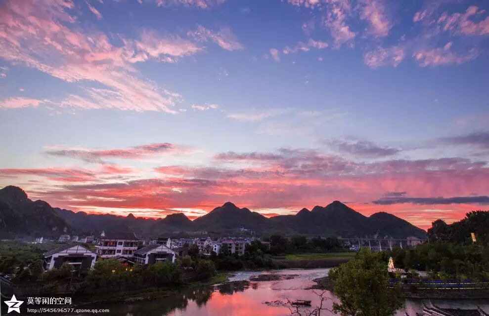 三、火烧云、村寨、渔舟唱晚构成一副靓丽的画卷。