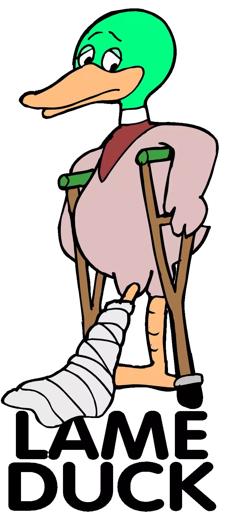 (2)The governor of our state ended up as a lame duck when he lost the election. He still has sixweeks left in office but there's nothing to do except to pack up his papers.
