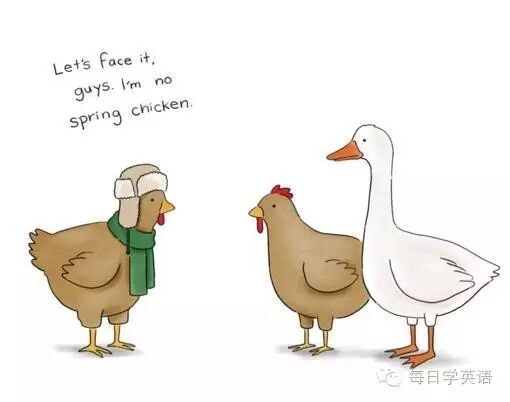 实际上,spring chicken意为“年轻人,缺乏经验的人”,lame duck是指“竞选连任失败、即将卸任的官员”,也用来指“不中用的人”。任何美国官员——从市长、州长、参议员到总统——都有可能因无能而被称为lameduck。