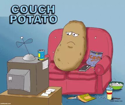 couch potato指一有时间就坐在沙发上看电视的人,一声不吭,一动不动,就像一个圆滚滚的土豆。