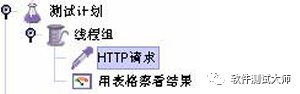 对于大多数的项目来说,并不会自行开发一个Web服务器,因此Web服务器压力测试的对象实际就是--发布到Web服务器中的软件。最简单的Web测试计划只需要三个 JMeter 的测试元件,如下图: