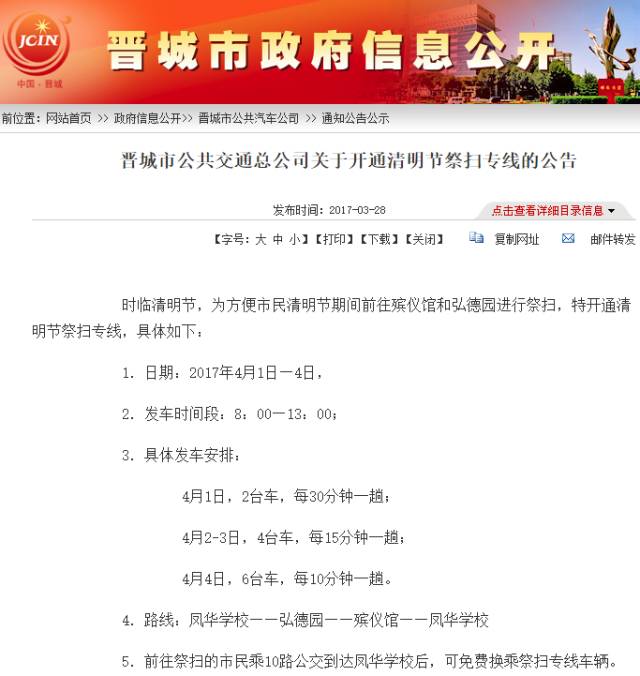 5.前往祭扫的市民乘10路公交到达凤华学校后,可免费换乘祭扫专线车辆。