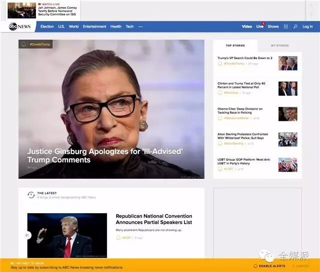 现在用户可以从平台上登录ABC的新产品,并且在弹窗提醒上有了更大的自主权:用户可以根据他们的兴趣个性化定制弹窗,有新消息时,会在网页或者手机客户端上收到弹窗消息。ABC同时还在研发基于地理位置的消息提醒。
