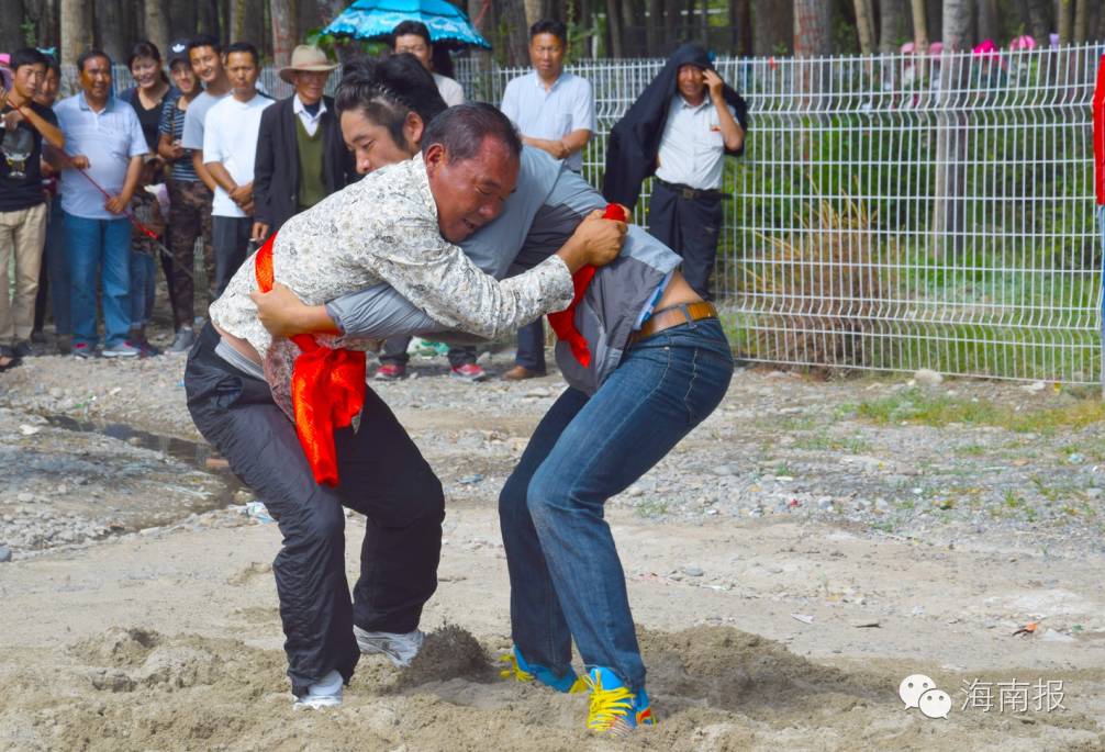 另一边,民族式的摔跤比赛也在如火如荼的进行着,在一块不大的沙地上,两名选手腰间系着红绸带,裁判员一声令下,他们都紧紧拽着对方,试图将对方摔倒,比赛开始时,两人不相上下,势均力敌,看的观众更是激动,不停的吹口哨,不一会儿,两人的体力都消耗的差不多了,很快就角逐出了胜负,然后赢的人在跟下一个选手进行较量。正在一边看的津津有味的王正福开心的笑着“我是朋友告诉我这边有个运动会就过来了,一看,还挺有意思的,各个比赛都很精彩,我又叫了家人一起观看,举办这种赛事,对我们老百姓来说很有意义,希望以后还会有。”