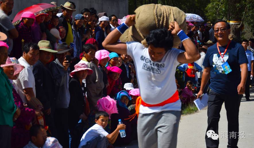 “加油,快到了”,8月23日下午,记者在贵德县河滨公园看到,参加举沙袋比赛的运动员肩上扛着200斤重的沙袋正在一步一步往前走,在炎热的烈日下,他们紧咬着牙关,脸颊两旁的汗水不停的留下来,每一步都走的那么艰难。观众不停的为他们加油助威。呐喊声和鼓掌声响成一片,此起彼伏,场面十分热闹。