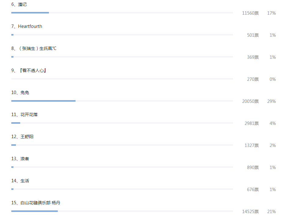 第二名:21%,白山花毽俱乐部 杨丹,14525票