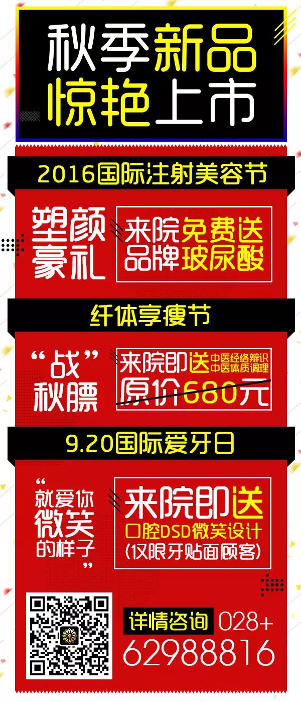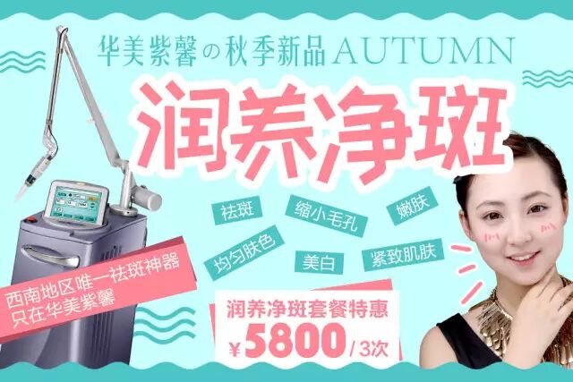 最近小编我收到了很多朋友发来的消息,全部都在问,为什么夏天都过完了,我脸上的斑点还在疯长!按理说,炎热的夏季过完了,没有强烈的太阳光,斑点应该不会长了才对啊,可是为什么这些妹纸脸上的斑点不仅不见好,反而更加严重了呢?来,我来帮大家分析一下原因!秋天,虽然没有夏天那样强烈的阳光照射,可是因为季节的变化,反而会让斑点更加肆虐!在换季季节,温差变大导致皮肤易变敏感不说,加上紫外线、和灰尘细菌的侵害,你面部的斑点才会更加严重!经过一个夏天的阳光照射,其实会在皮肤底层产生很多黑色素。在夏季,这些黑色素没有及时爆发出来而一直隐藏在皮肤底层,一到秋天,这些斑点就全部发出来了!最后,到了秋天很多姑娘长斑的原因都是因为面部缺水!很多姑娘到了秋天还是和夏天一样使用比较干爽的护肤品,其实,这样对皮肤并不好!秋天到了,天气相对干燥,一定要选择补水力度大的保养产品,这样才能及时补充肌肤水分!朋友们,明白了吗?这就是你秋天斑点还在疯长的原因,脸上的斑点肆虐的你,还是赶紧祛斑才要紧!秋季祛斑和夏季祛斑不一样,秋季祛斑关键在润养!一是滋润,二是保养!双管齐下,才能让你脸上的斑点全部走开!华美紫馨特推出秋季祛斑新套餐:润养祛斑!三次祛斑仅需5800元哦!秋季脸上被斑点肆虐的妹纸们,你们赶紧来试试吧!华美紫馨·润养净斑独家引进RevliteSI--C10,是西南地区唯一的美肤祛斑神器!该仪器以一个快速和强大的能量直接震碎黑色素,针对雀斑、黄褐斑、咖啡般、老年斑、等多种色素病变,有相当好的疗效!在祛斑同时还能自行启动皮肤修复,促进胶原蛋白的更新与增生,达到祛除斑痕色素、美白嫩肤、改善细纹、细腻肤质的四重特效组合。祛斑美肤,双管齐下,这才是润养的功效!华美紫馨拥有国际多种先进祛斑仪器联合祛斑,多管齐下,才能将斑点彻底拔出!再加上华美紫馨权威的祛斑专家,专注18年研究各类斑点问题,了解各类斑点情况,在治疗中能准确掌握患者斑点深度及广度,完美保证祛斑治疗安全有效果。最后,华美紫馨祛斑专家18年来致力祛斑研究,6万净肤祛斑案例库为学术理论做支撑,她、她、她们都已经重获完美无暇肌肤!