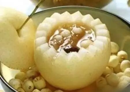 3、燕窝梨大养肺阴:所需要的材料包括了燕窝(水浸泡),白梨,川贝母、冰糖等四种,制作方法是把白梨洗净然后挖去核心,将其他三味材料一同放梨内,合起来盖好之后扎紧放碗中,上锅隔水炖熟。一次服食。可以起到养阴润燥,止咳化痰的功效和作用。