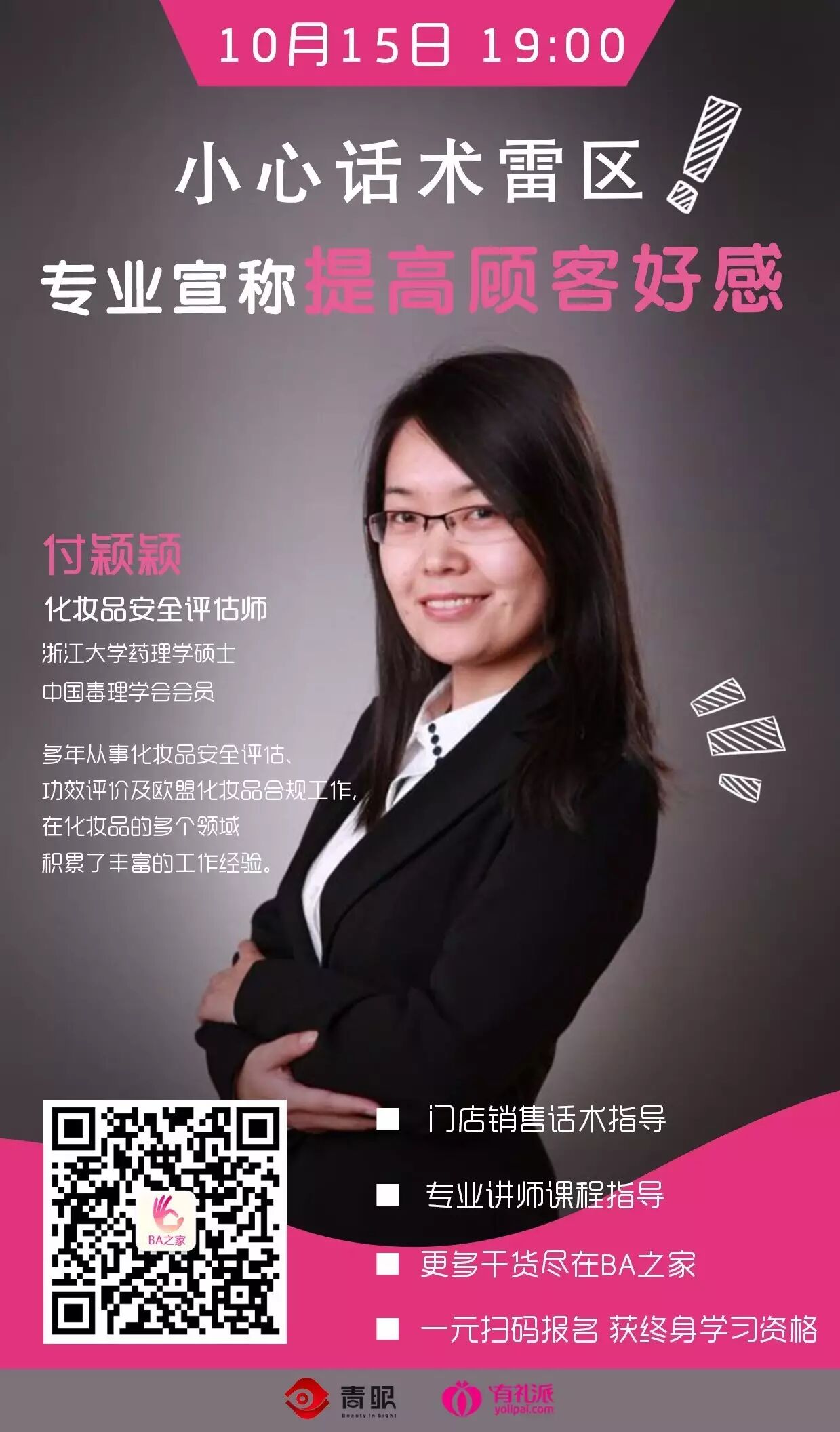 【BA之家】公开课,付颖颖老师原声支招,教大家小心话术雷区,专业宣称提高顾客好感。大家要留意开课时间哦。