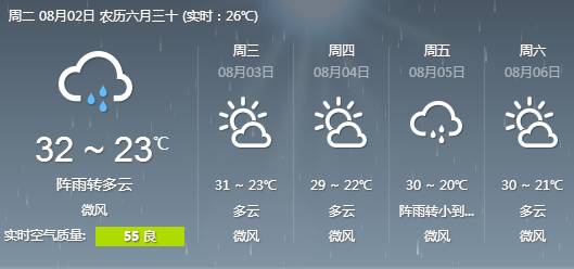 8月2日开始,渭南市受副高边缘支流西南气流影响,渭南市将会出现多云间阴天,局地有阵雨或雷阵雨天气,气温也会有所下降,最高气温在33℃-35℃,渭南市将会很少出现35℃以上的高温天气。