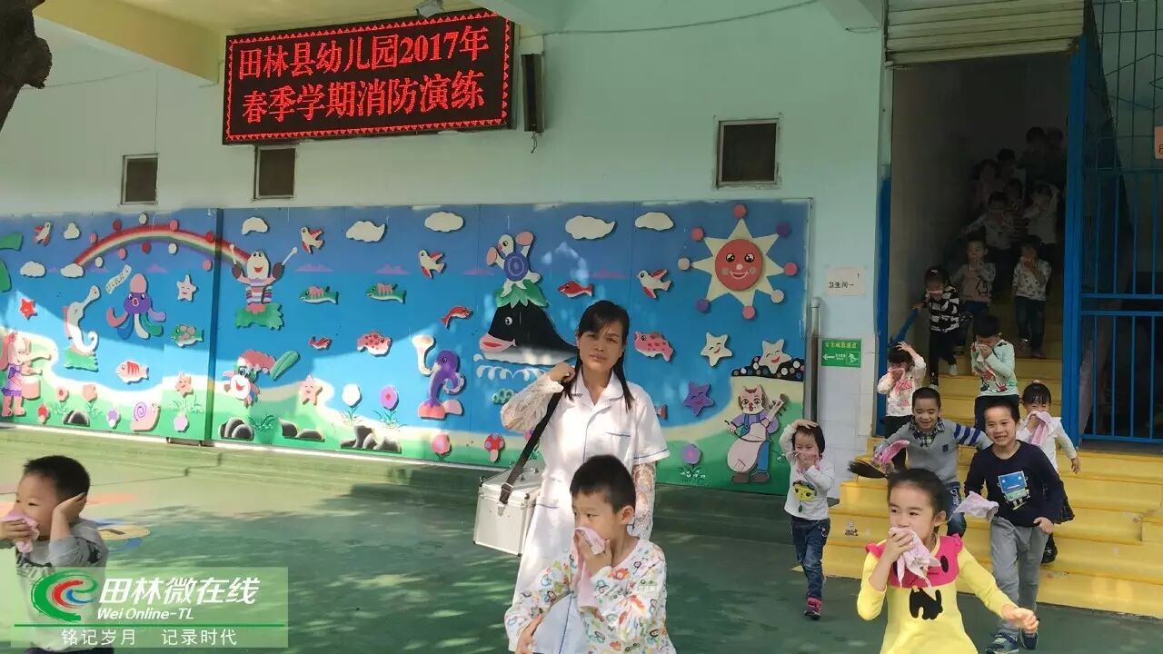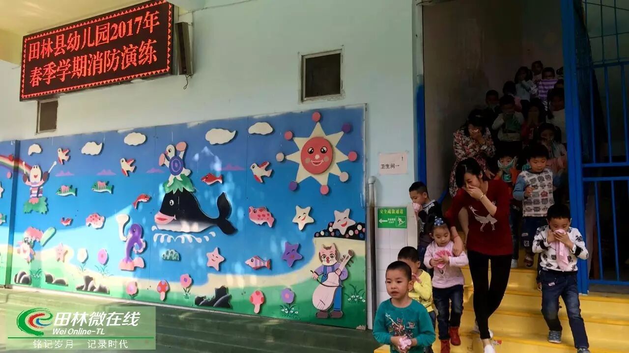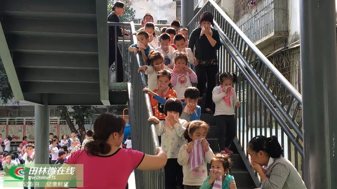 为了提高幼儿抗击突发事件的应变能力,增强防火逃生意识,提高全体师幼防火救灾、自救自护的能力,田林县园开展了消防紧急疏散演练。