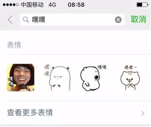 此外,还可以单独搜索带关键词的文章、小说等,最后表情的选项简直就是斗图必备技能啊!随便输入个表情形容词就会出来很多,我输入的是“嘿嘿”,你们看看哈。