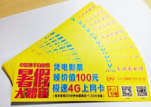 凭电影票领价值100元极速上网卡(每月享用200分钟全国通话+1.5G大流量)