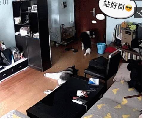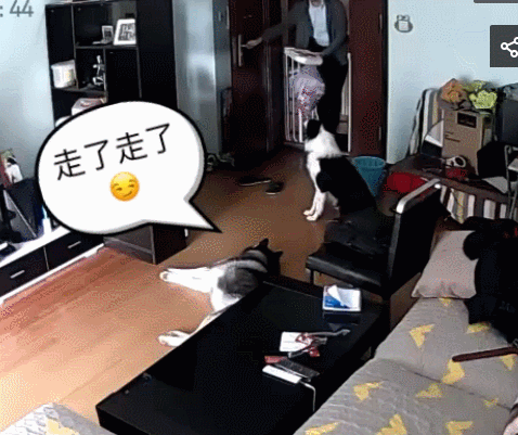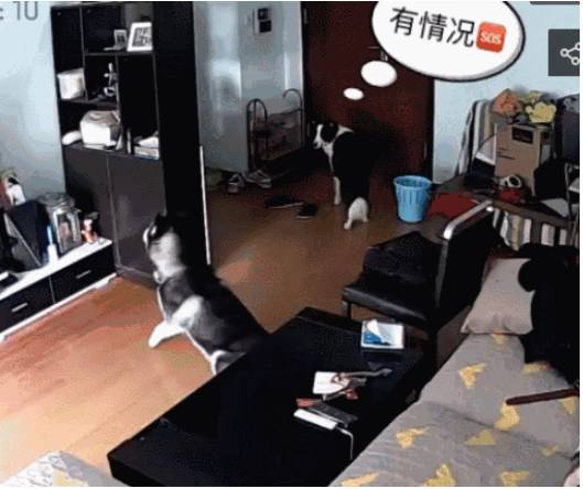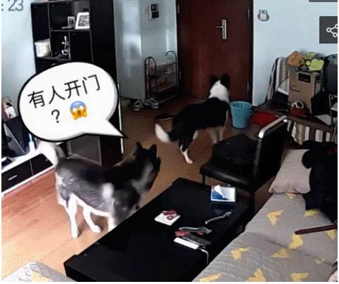 网友@马猪猪家养了一只哈士奇和一只边牧,这天,他和往常一样出门了。