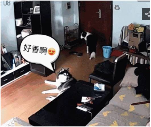 躺着的二哈看时机成熟,开始有“作案”想法了。