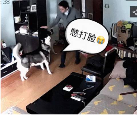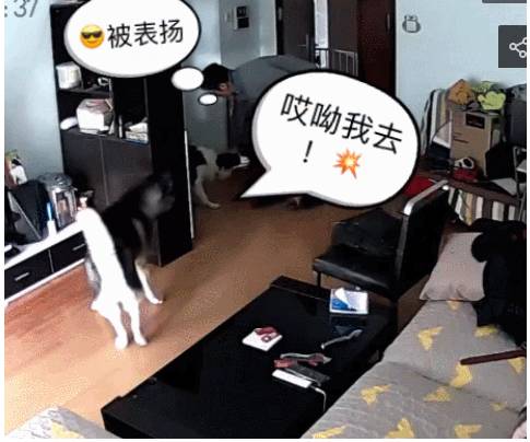 主人表扬了边牧,惩罚了贪嘴的二哈,哈哈!