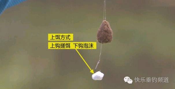 3、当然泡沫也有一个缺陷,就是不雾化、无气味、诱鱼力度不够,这时可以采用下钩挂泡沫、上钩搓饵蘸颗粒,或者搓饵带散炮的形式来续窝,以达到诱鱼留鱼的目的。