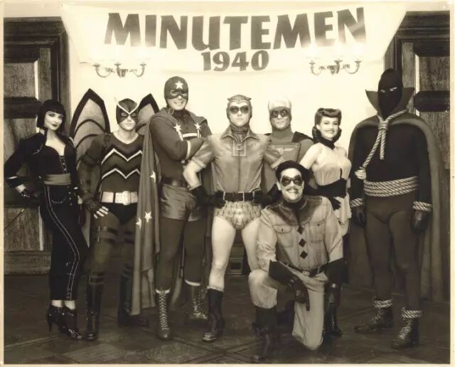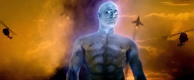 现实世界里,在深渊般晦暗莫测的人心与迷宫般复杂诡谲的阴谋诡计面前,这些蒙着脸、穿着内衣内裤行侠仗义的“英雄”们只不过是一个又一个的笑话而已。(上图:与诺兰的“去戏服化”不同,《守望者》里的战衣真的就是内衣内裤——所谓的超级英雄,只不过是一个个笑话。)