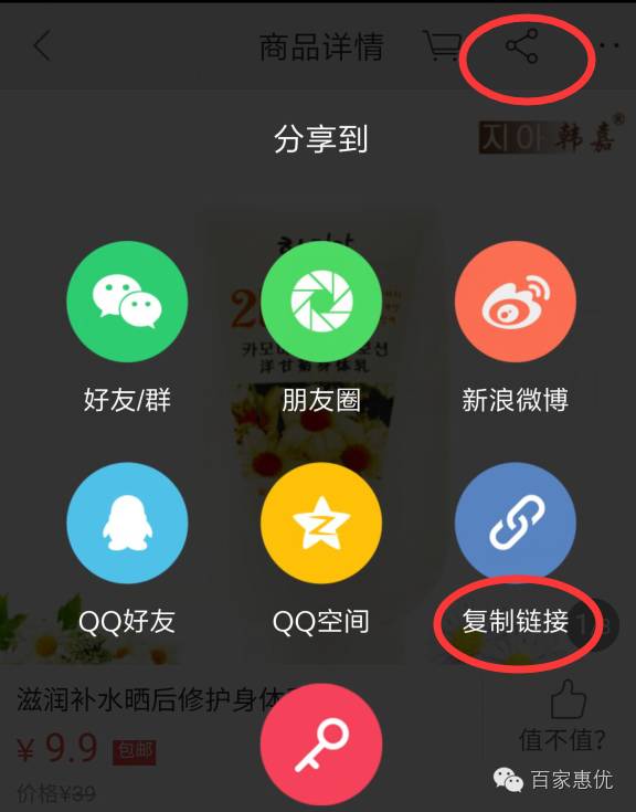 选好相应商品,点击右上角分享中 ▍复制分享链接 ▍