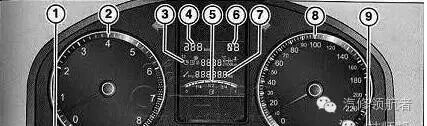 1、关闭点火开关,按住回零/调整按钮⑨(右下角按钮);
