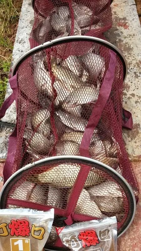 刚好听朋友说昨天一个新塘开张,也是钓友新开的,大部分放的鲫鱼,还有少量的鲤鱼、青鱼与大头,抱着空军的心情今天起个大早就直奔钓场,6:30到了钓场发现我来的太早还没有来一个钓友,心里那个美啊。7:00一切都准备好了就开钓了,由于下着小雨开饵的图片没拍到,开钓后想着先用散炮试试,一抛杆下去到底后直接黑漂,一提杆等鱼出水面才发现是双飞,哈哈,开了个好头,这下开拉了就一直连杆了一个多小时,老板已经有点坐不住了,不停的在群里面喊连杆,这次放的鲫鱼个头都不大,要像冬天那样7两起步到一斤半那种真的要爆护,连杆到九点左右就出大太阳了,小罗非就开始闹窝,散炮打下去到底后陆陆续续上鲫鱼,中间起了两条鲤鱼,有条青鱼已经拉到水面看到了,一个俯冲直接秒切子线,呵呵,没办法,今天只要是鲤鱼和青鱼基本上都是切子线,最后鱼获36.5斤,对于我这种菜鸟级别的来说已经很开心了。