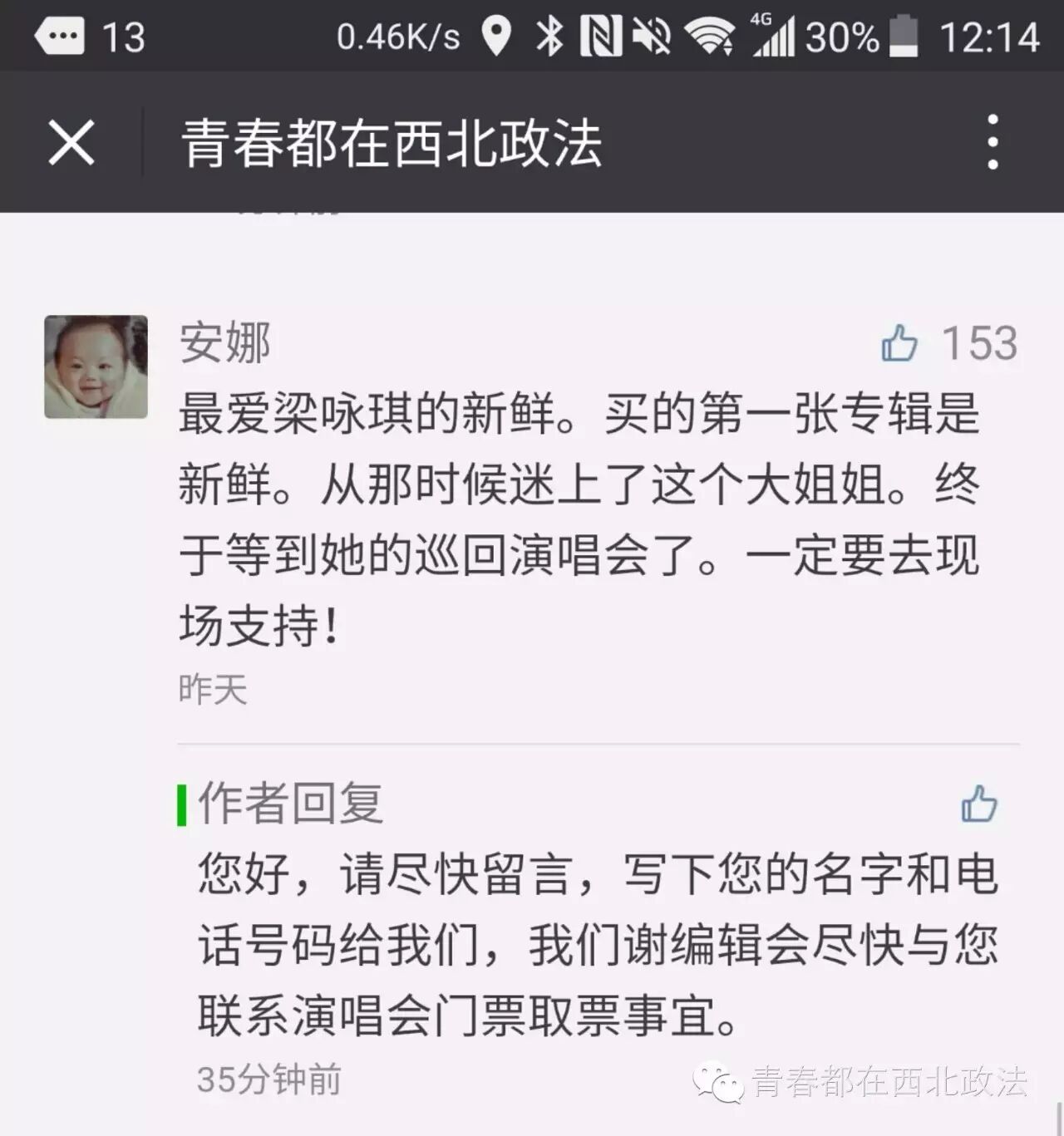 昨天我们青春公号推出了热帖《【校友福利】梁咏琪演唱会门票免费送!》