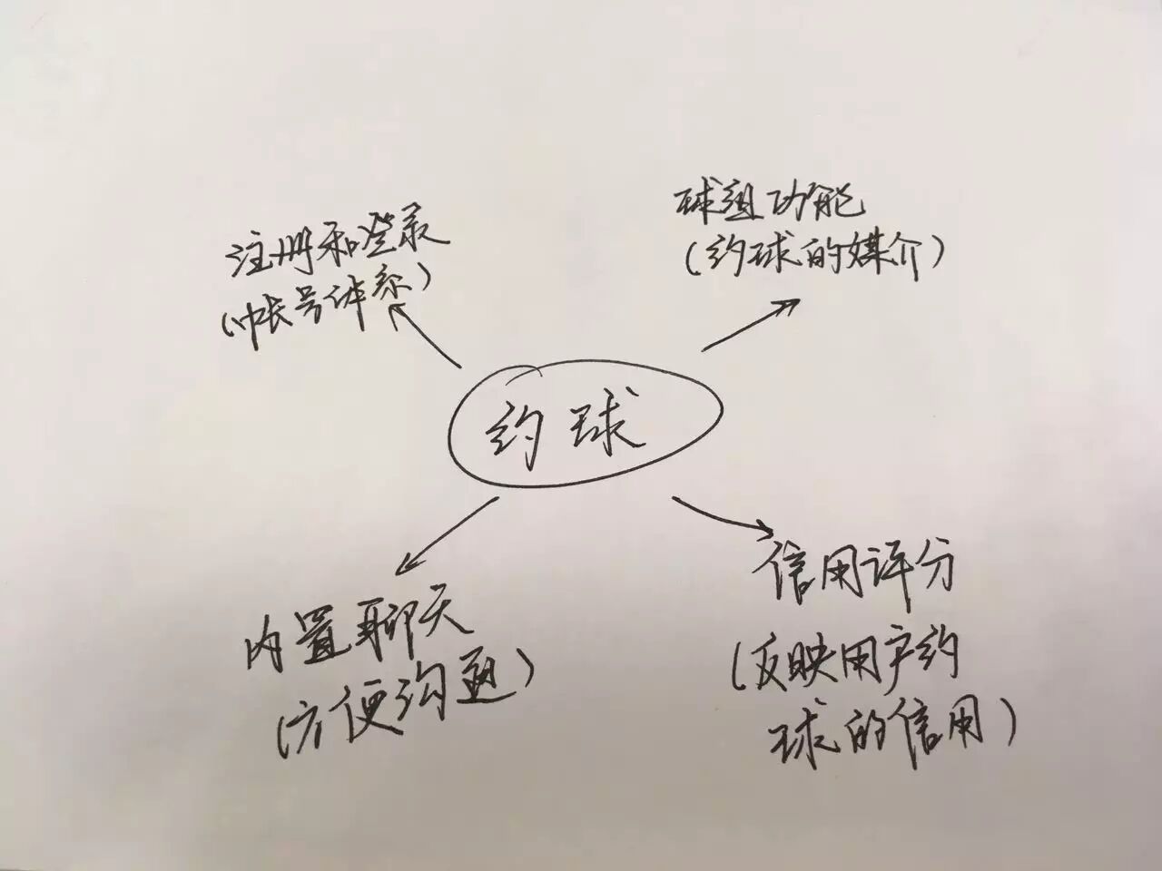 聊天功能(方便交流)。在约球过程中会出现很多需要交流的场景,比如找不到球场、突然有事来不了了要通知其他球友等,加入聊天功能有利于方便球友之间沟通。背靠微信这样一个大的通讯工具,如果能直接调用微信的聊天功能,那就再好不过了。