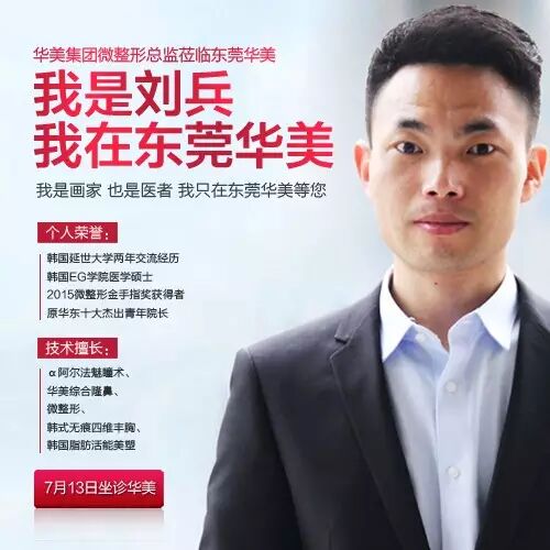 刘 兵 始终致力于微整形领域的研究,将美学设计和精细操作结合。他认为,医学审美是以研究解剖结构为基础,但实际情况并不是那么简单,需结合顾客的背景、气质等综合考量整体的美感。对亚洲女性的审美有独到见解,持科学整形的整形观点,擅长将艺术与技术的完美结合,运用细腻手法施术,尤其擅长全面部整体设计、面部轮廓重塑、注射抗衰老、注射精雕。
