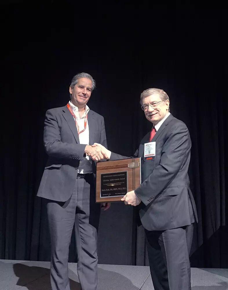 当天上午,在AHA科学年会复苏科学研讨会上颁发了心脏复苏科学终身成奖和创伤复苏科学终身成就奖,分别授予英国皇家巴斯联合医院Jerry Nolan教授及伦敦皇家医院创伤外科Karim Brohi教授。