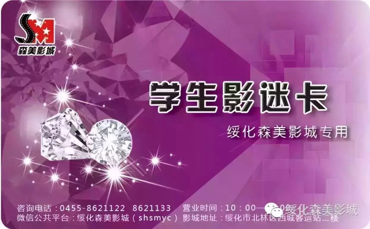 即日起持学生证即可买影迷卡100元1张可观影4次,2张空卡可再免费观影一次(VIP影厅除外)