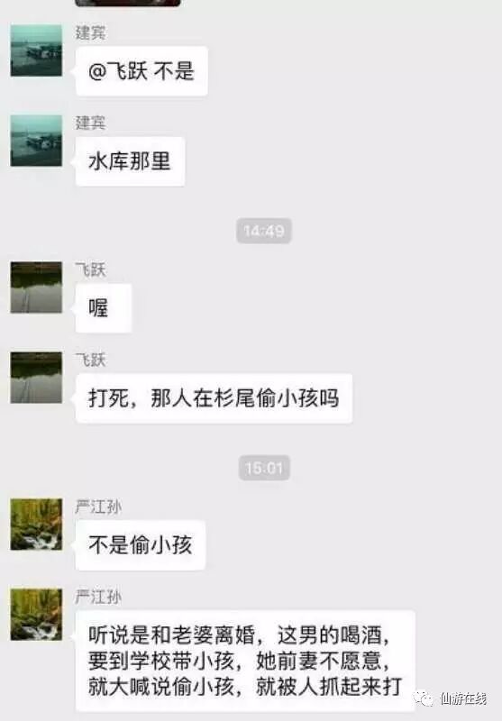 今天仙游人的朋友圈、聊天群被以下几段视频给刷爆了。视频记录仙游杉尾某地一男子被围观的群众质问并殴打,并附传有多个事情真相,有人说是偷小孩。也有人说是因女生父母离异,父母发生抢孩子大战引起误会,惨遭众人殴打……一时间令真相迷雾团团。