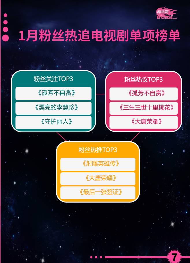 热追电视剧TOP3:《孤芳不自赏》《三生三世十里桃花》《大唐荣耀》