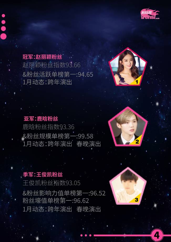 明星粉丝指数榜TOP3:赵丽颖、鹿晗、王俊凯