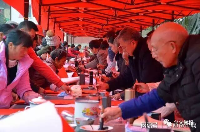 1月20日当天恰逢捧乍镇赶集天,不少群众得知活动消息后都纷纷前往现场,希望能领取到老人们现场书写的墨宝,同时也为春节增添几分节日的喜气。