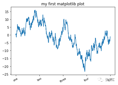 lables=ax.set_xticklabels(["one","two","three","four","five"],rotation=30,fontsize="small")#设置x轴对应的标签,y轴把x换成y即可