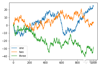 ax.plot(randn(1000).cumsum(),label="three")#创建label标签