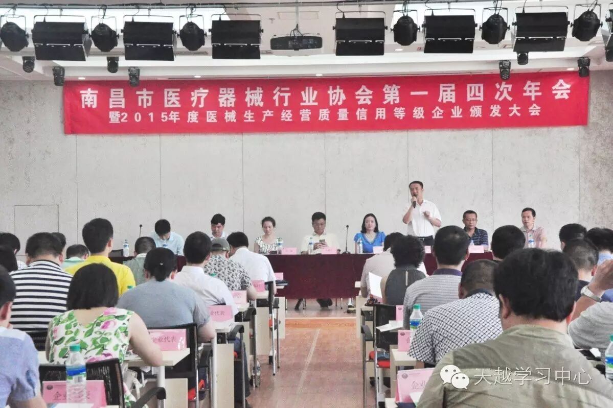 2016年6月30日上午,南昌市医疗器械行业协会第一届四次年会暨2015年度医械生产经营质量信用等级企业颁发大会在江西天越集团大厦12楼会议室正式召开。市食品药品监督管理局副局长曾性军,器械处处长徐嬿,市医疗器械行业协会会长应淑华,副会长杨佳,江西天越集团董事长王世和,各副会长单位、理事单位、会员单位及江西省级医院、南昌市级医院代表参加了此次大会,会议由行业协会副会长杨佳主持。