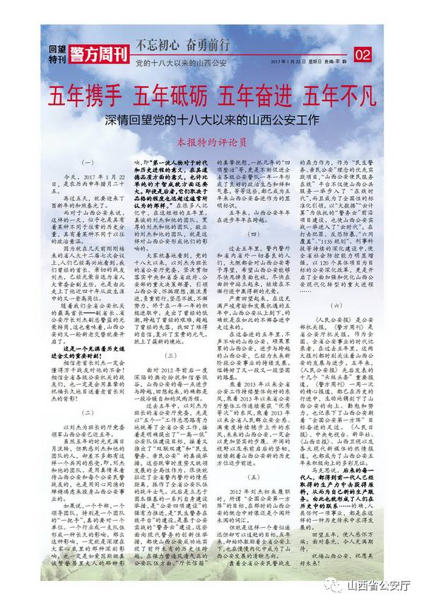 文章指出,,回想起来,,的确都是一段冷暖自知的风雨历程。文章指出,过去五年中,“五个一”,,接着又推出了“双联双建”和“民生警务、等等真诚举措。这些既审时度势又统领发展的全局性作为,、警外情感距离,。此后,是立志于固本强基的一系列自身建设举措,“四项建设”的强有力推进,是“民生警务在线平台”的持续有力建设,“警务云”前沿科技建设,是基于自我砥砺和坚持不懈的执法规范化建设,这些面向时代发展要求和现代警务转型要求的创新性举措,。,一丝不苟的从严治党和从严治警举措,一抓几年的“四项整治”,“暖警工程”的强有力实施,“厅长信箱”的真挚抚慰等,。等等这些,。