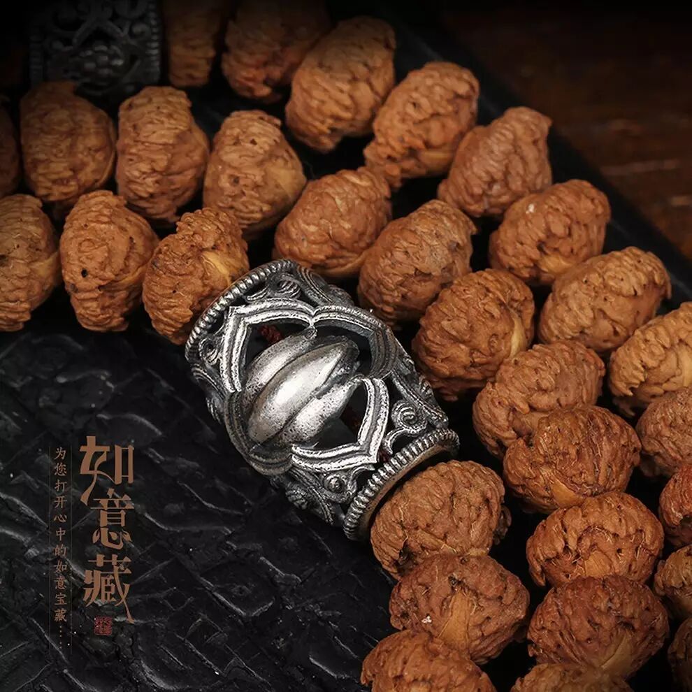 经典规定:西方佛佛珠的主珠材质应为莲子;但因莲子极易损坏,故图中这一挂西方佛佛珠,我们以莲花菩提作为主珠。