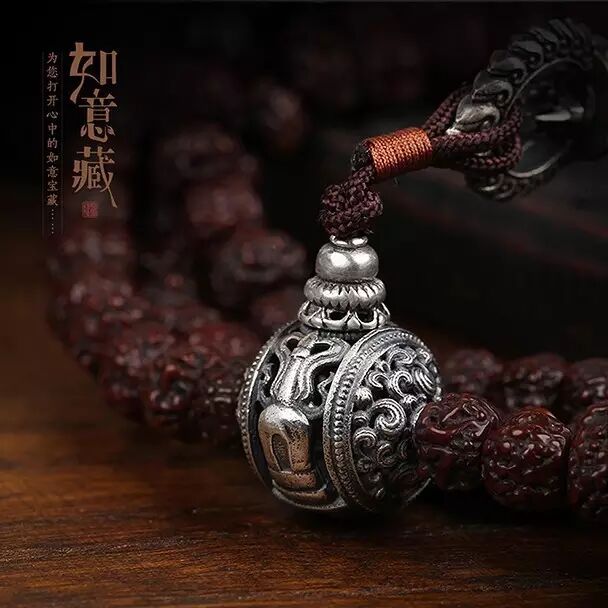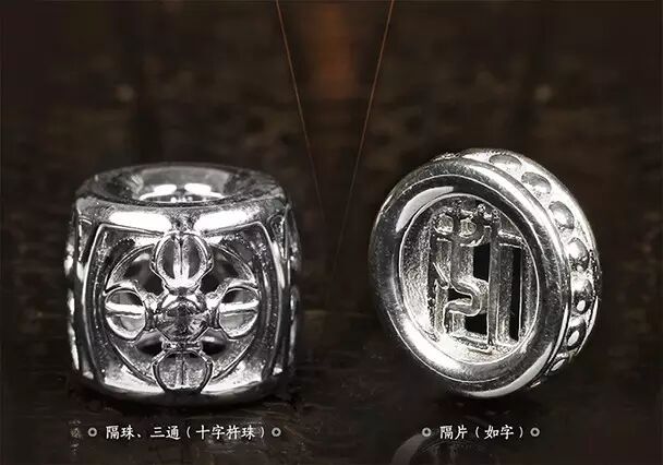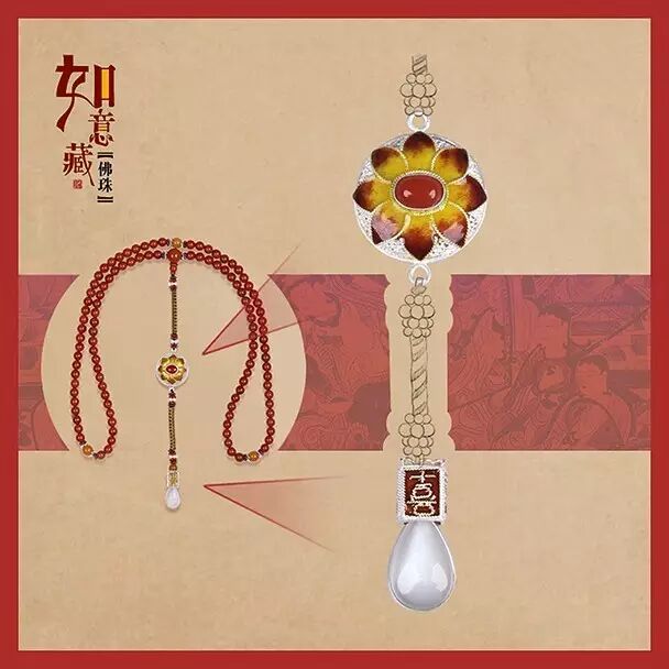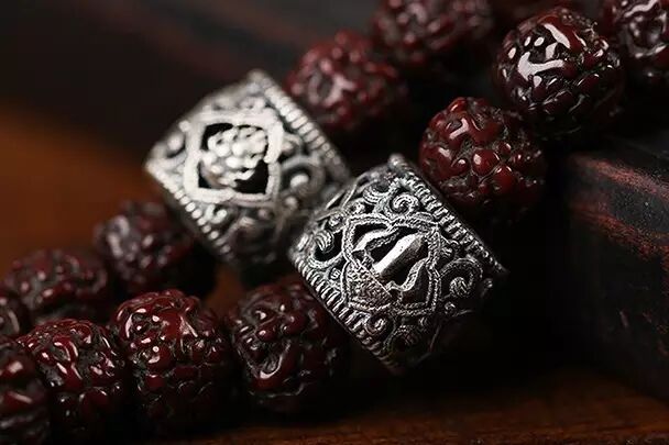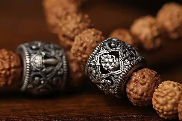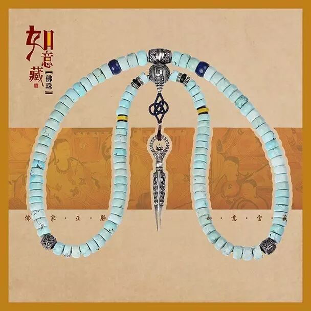 再配以青金石、琉璃、银饰等佛家七宝;并可根据戴持者要求,增加黄金、琥珀等各种材质的隔珠、配饰。