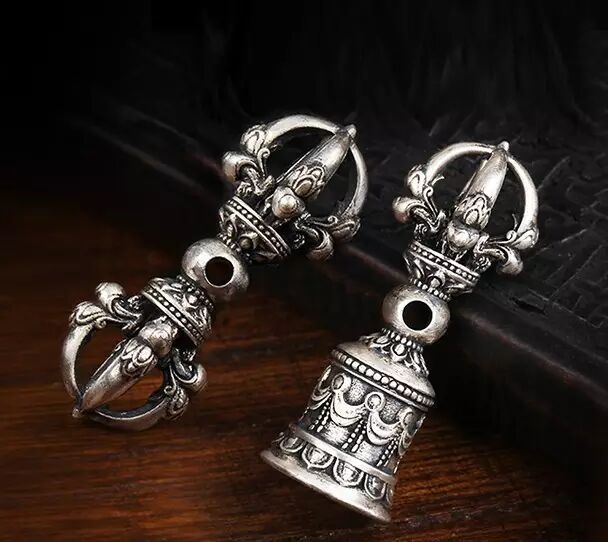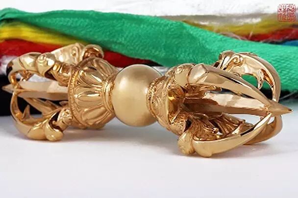 花丝背云上是北方佛的法器——羯磨杵(十字三股杵);